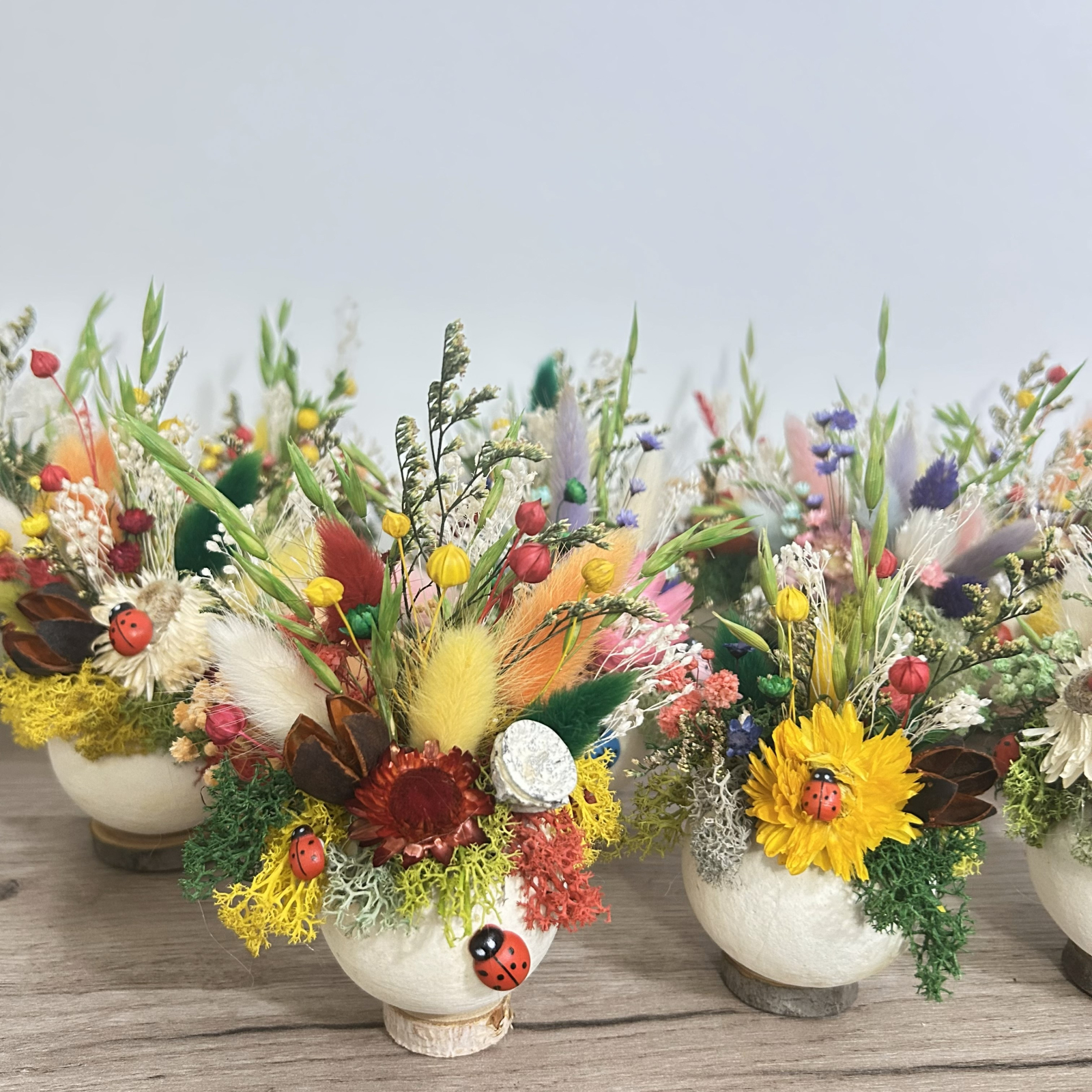 ✔️ Materiale naturale: flori de paie, licheni stabilizați, plante uscate