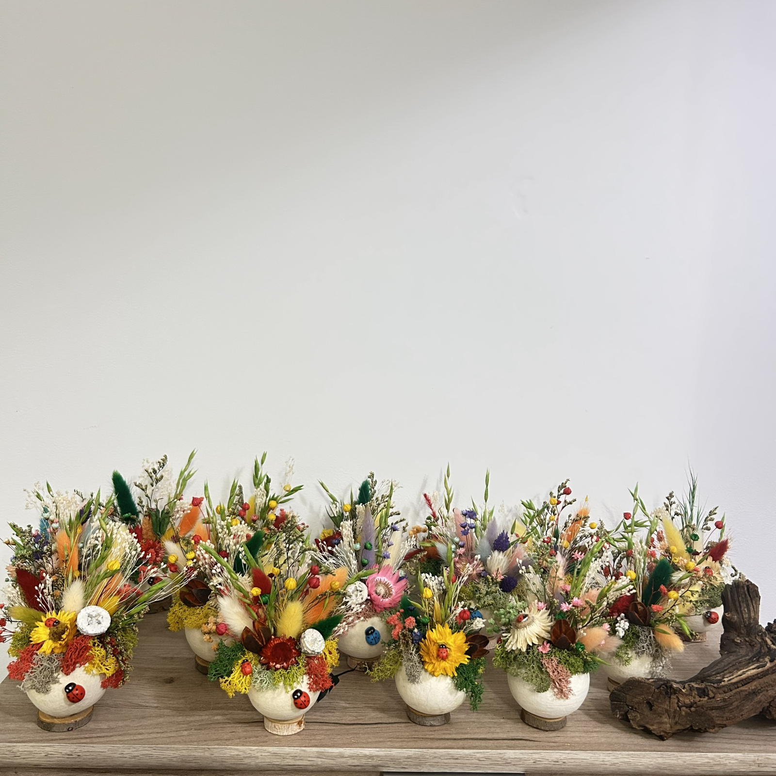Materiale: bell cup, flori de paie, licheni stabilizați, plante uscate